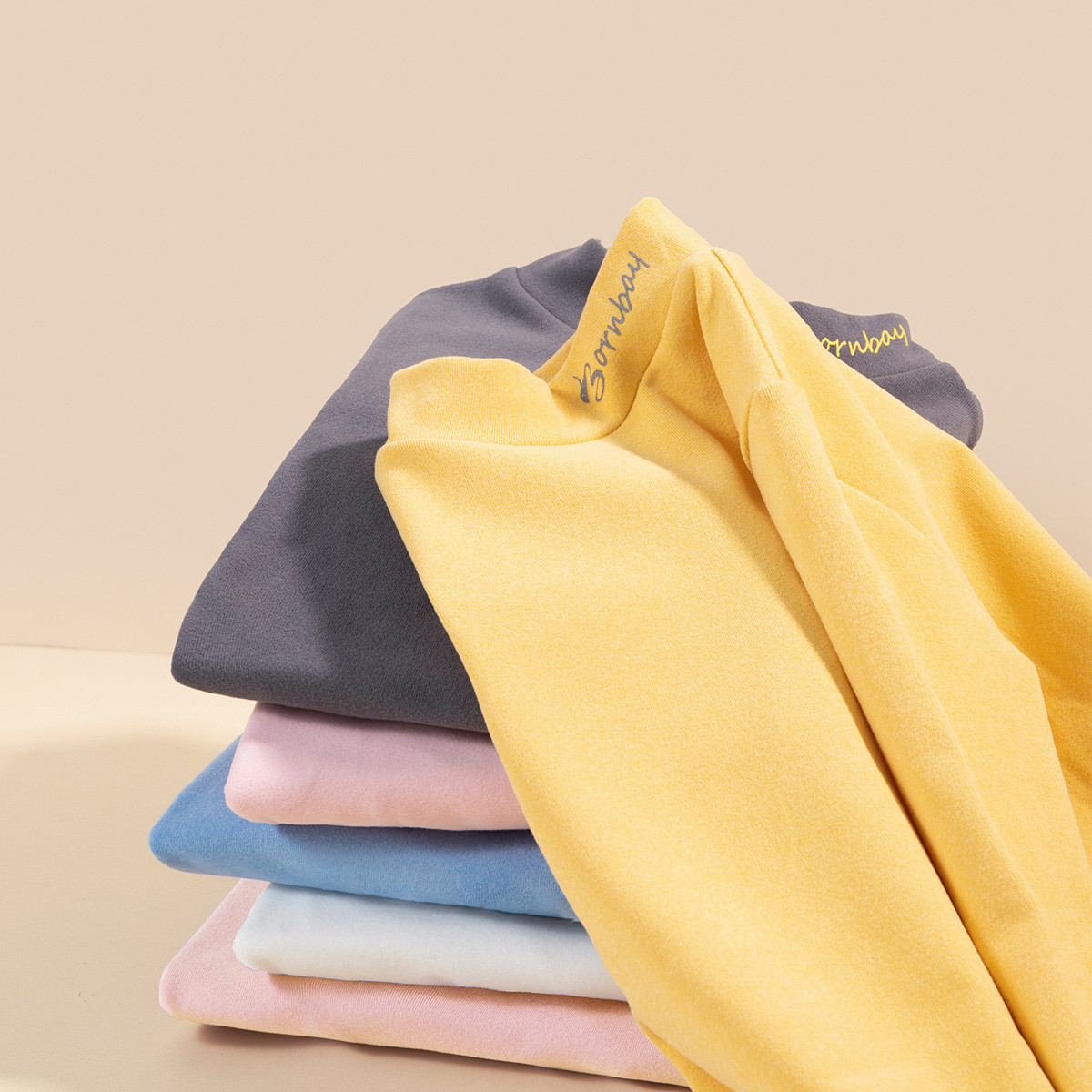 Pijamas para niños de otoño e invierno, ropa interior suave de manga larga para niños y niñas, ropa para el hogar con medio cuello de tortuga a prueba de viento, tops interiores cálidos